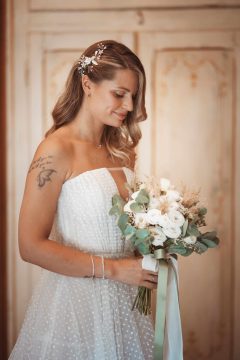 In una location di matrimonio in stile country chic Greta e Andrea sono i protagonisti di una cerimonia civile fatta di discorsi commoventi, lacrime di gioia e fili che si intrecciano ad indicare l’inizio di una vita nuova insieme.