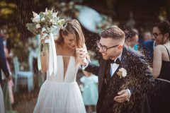 Dopo una casquet perfetto e una pioggia di riso inizia il ricevimento di matrimonio con ottimo cibo, musica e tantissimi amici.